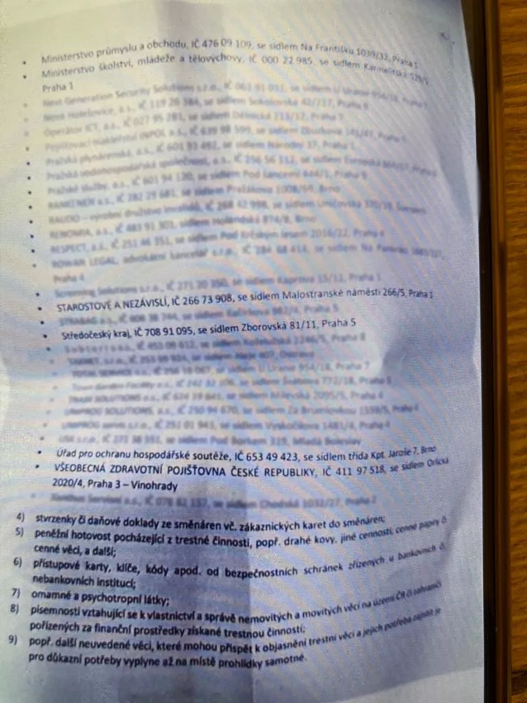 V policejních dokumentech se objevují například Všeobecná zdravotní pojišťovna, Dopravní podnik hlavního města Prahy nebo Středočeské silnice. Na seznamech domovních prohlídek jsou desítky firem a jmen – mnohé z nich obchodují s veřejným majetkem a veřejnými financemi už desítky let.